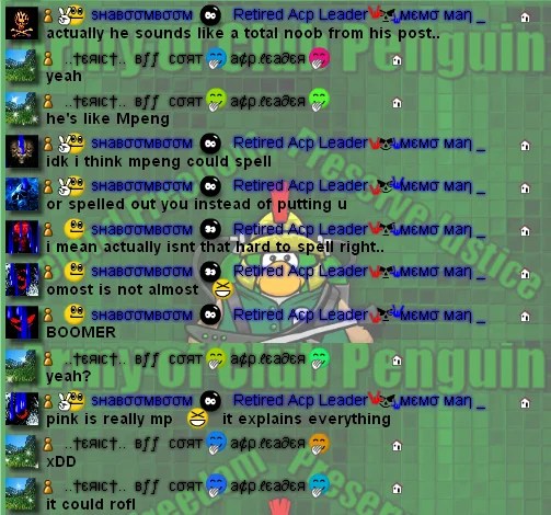 As it turns out, Pink was actually Mpenguin123, another ex-UMA Leader. I made a comment to Shab that Pink’s grammar was as bad as Mp’s and Shab was ALL OVER IT.