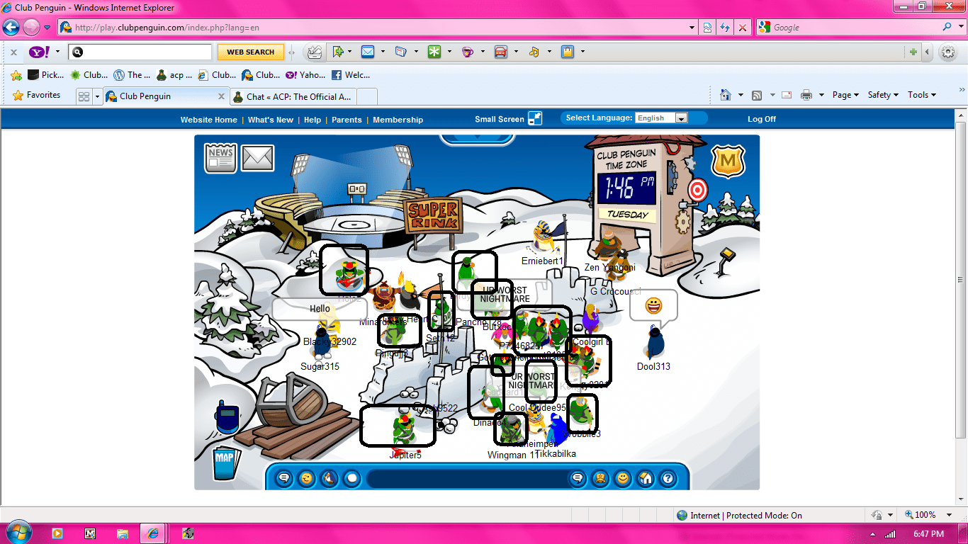 guys, I’m on a tight schedule this week… 🙁 I have to do the CST, I’m going on a field trip, and I stay at an after school program…. so i can only make one appearance on Saturday… 🙂 So I will try and see…. p.s i am on for a short amount of time on Club Penguin because i leave for piano at 11:00 a.m