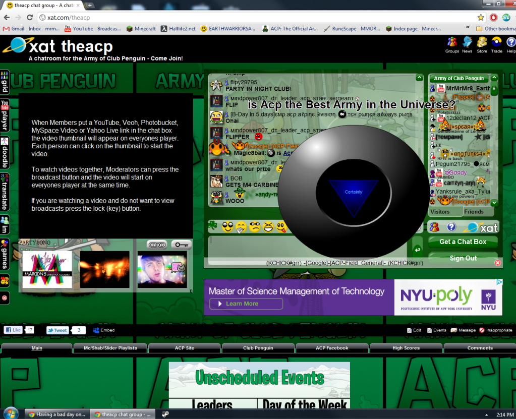 I couldnt come to any events on sunday due to being out of the house for the whole day. Soryy about that 🙁