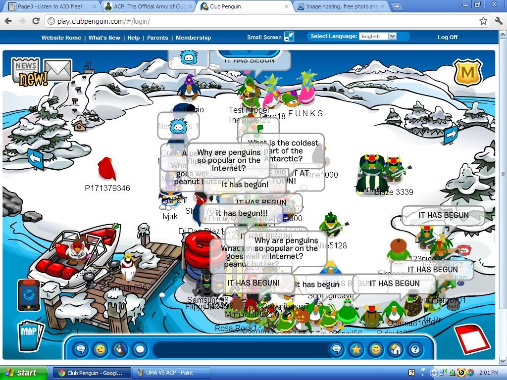 Hey guys, today we did AMAZING. We logged on at around 40 minutes past the hour, and started off in the Dock where the battle was going to be held, and we stayed there until the battle started, but there was no sign of UMA..