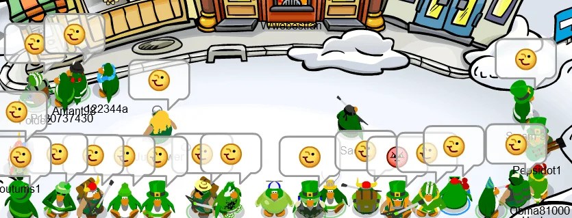 After we won our defense on Klondike we had to fight the Nachos. There were reports that PR was going to raid Cloudy so we battled on Tundra. So off we went! The 2ics (Slider) and 3ics (Funks and Ek and Cart) lead the pre-battle until 3:30 EST. Flipper was busy doing important buisness in real life I guess so I lead alone in this battle. Thanks to all owners who hushed and repeated orders since I did not have any days. So PR and DCP raided but we got rid of them easily by changing rooms, however they both still affected the numbers of the ACP and Nachos. We both briefly contemplated fighting PR in pink but decided not to. We charged the Forts first quickly, but to our surprise the Nachos did not even try to charge in. Instead something even worse came in after. The Purple Republic! They were drilling and making noises but that didn’t bother us. We decided to battle Nachos at the Dock. Made a line and did tactics like snowballs and emotes.