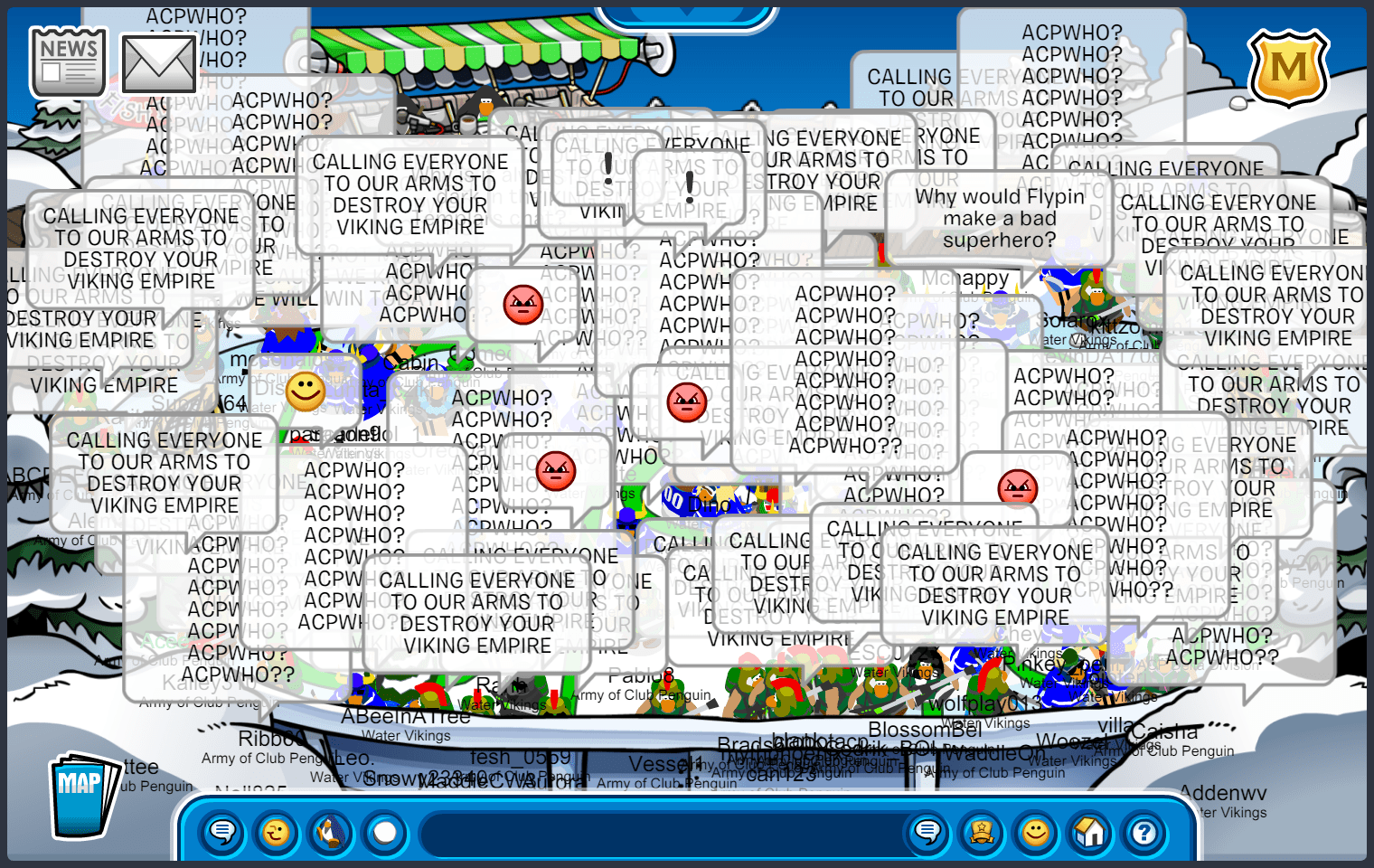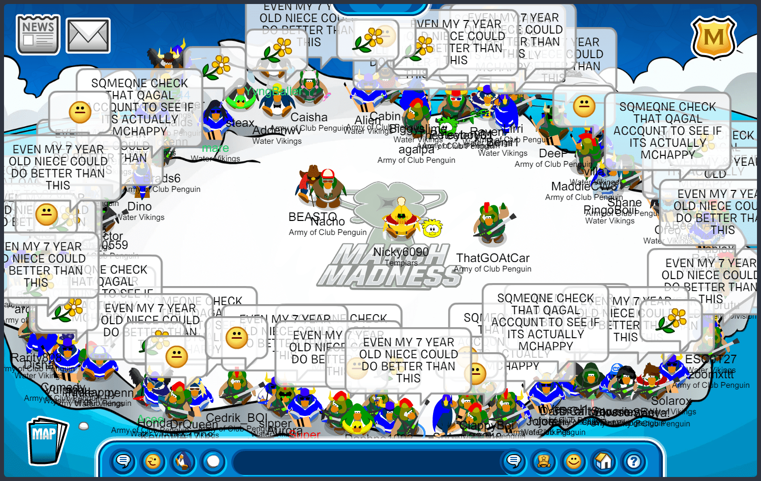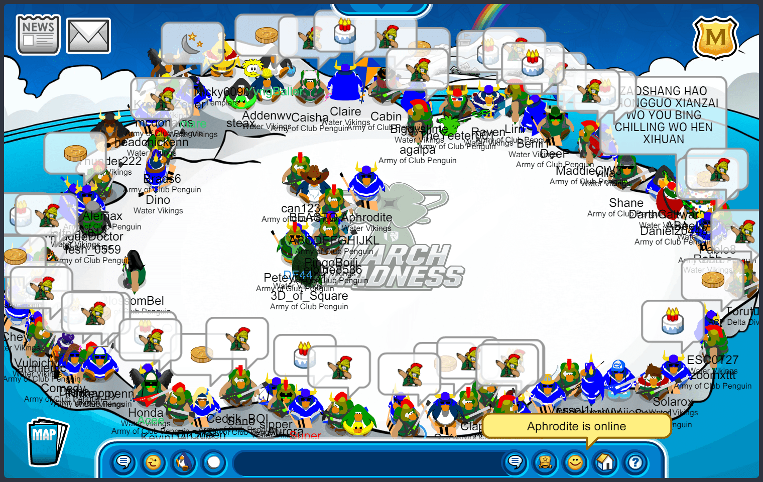 BATTLEGROUND, “March Madness Qualifiers: ACP vs. Water Vikings” — Good evening, troops! It is with so much pride that I tell you on Sunday, March 12, the Army of Club Penguin had a massive March Madness victory over the Water Vikings. The army has been preparing for this event since the beginning of the year, and all the hard work has finally paid off!