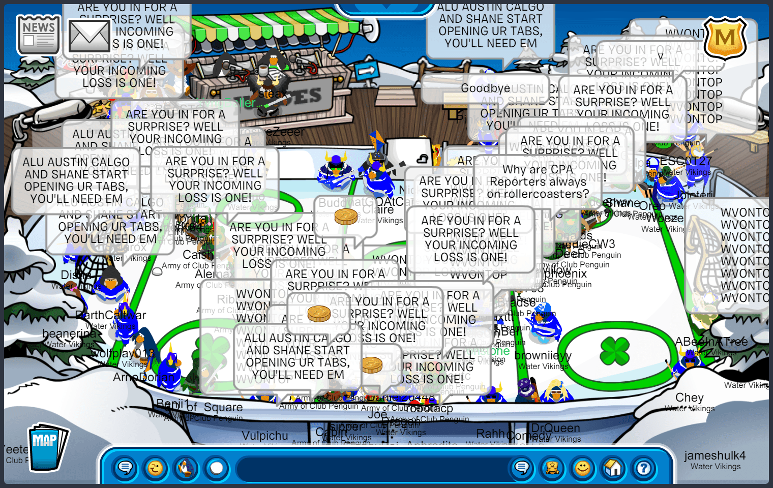 Filed under: ACP, Army of CP, UK Division | Tagged: ACP, Army of Club Penguin, Army of CP, AustinFraud, Battleground, Calgocubs21, clover defenders, clover penguins, clover trooper, Club Penguin, Club Penguin Army, cpa, CPAJ, Dino, Giveaway, March Madness, McDonalds, Mchappy, MM, MMISOURS, Qualifiers, RPF, Shamrock, Shamrock Bulletin, Shane, water vikings, WV |